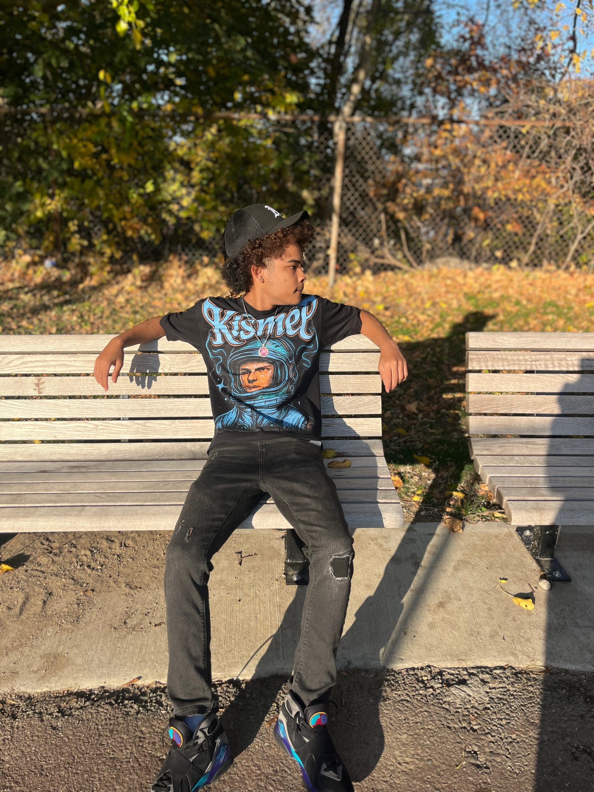 Step into the unknown with the Kismet Astronaut Tee. Designed for the dreamers, the explorers, and those who chase what’s written in the stars. This piece features a bold front graphic of a lone astronaut surrounded by cosmic smoke and glowing accents, paired with the word Kismet — symbolizing destiny and divine alignment.